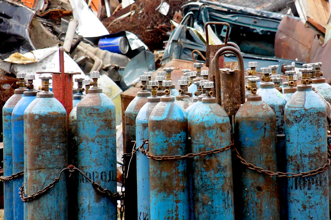 Een oude gasfles mag niet bij het reguliere afval vanwege het ontploffingsgevaar door restgas.
